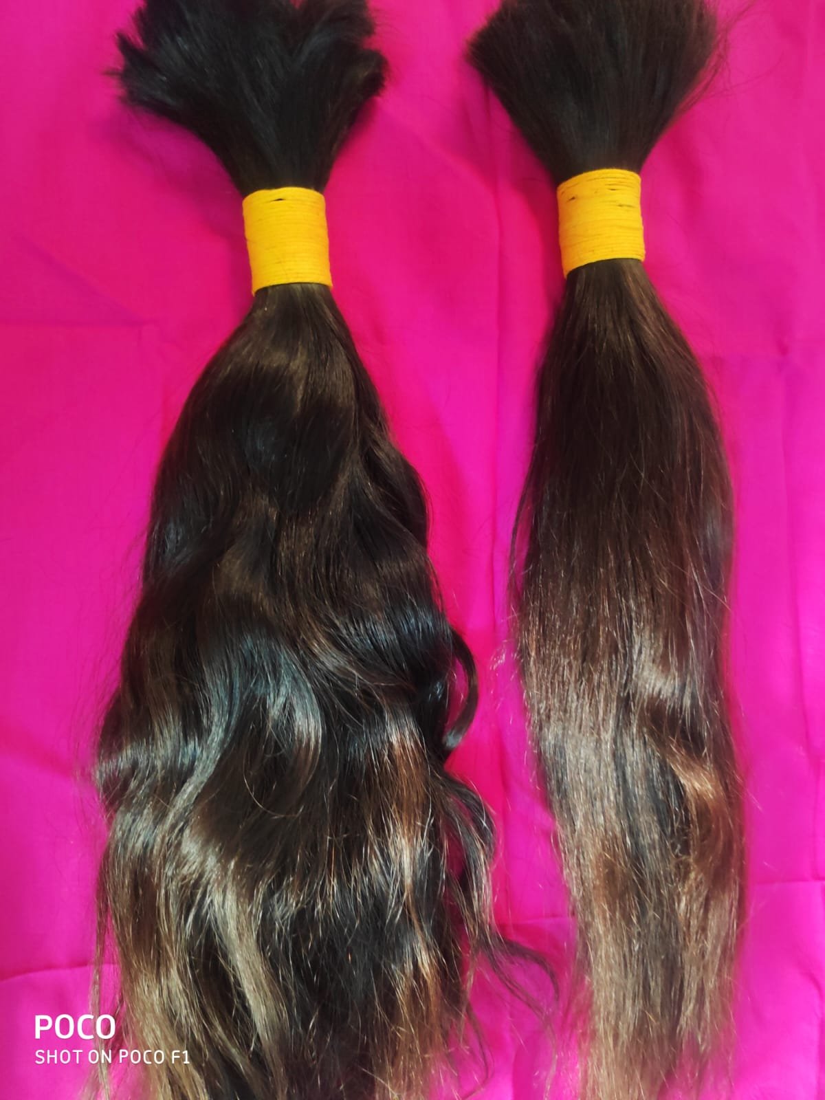 100% Natural bulk (loose) hair available in straight, wavy, and curly textures — perfect for braiding, wig-making, and custom styling. (Cost in Rs100 /Gram)